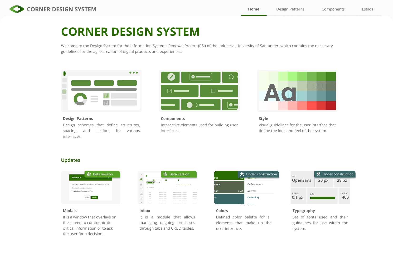 The internal ERP platform at Universidad Industrial de Santander was fragmented. Each team —design, development, QA, and leadership— relied on their own interpretation of how the system should look and behave. There was no single source of truth, no shared design language, and no standard documentation.